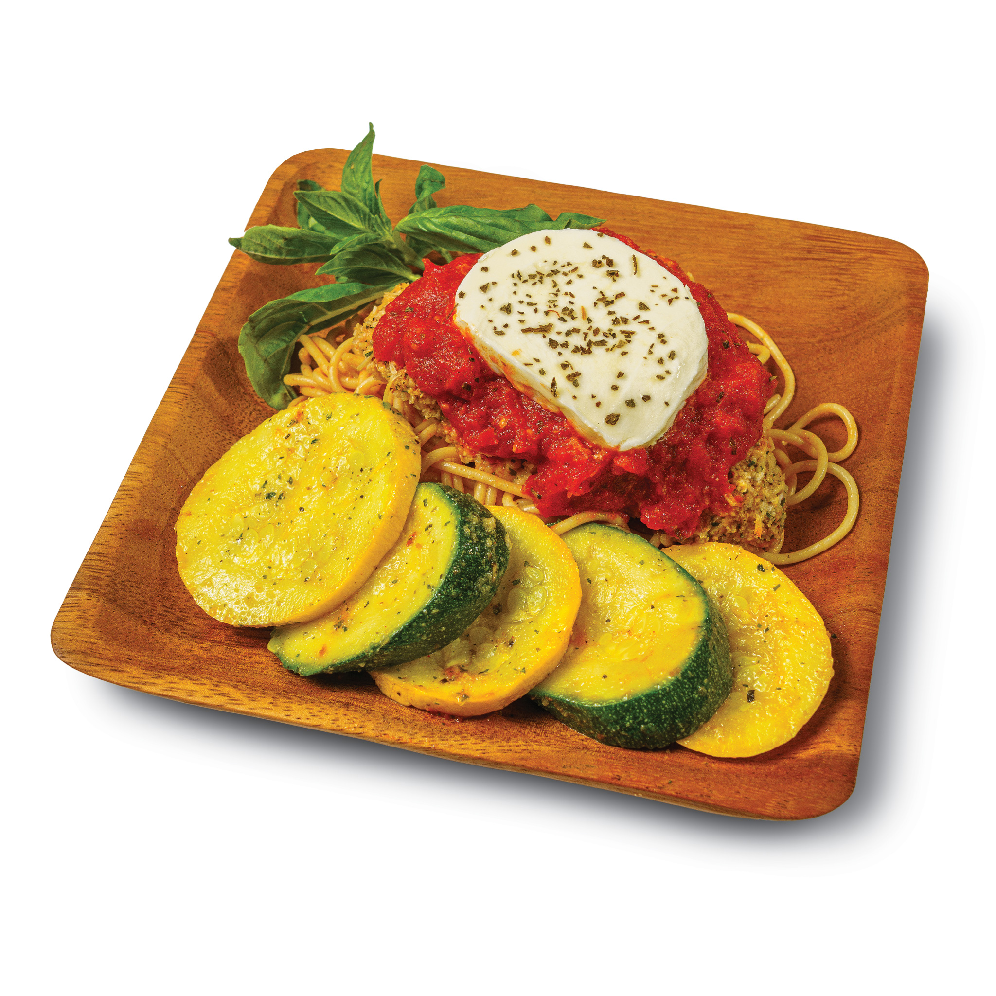 Chicken Breast Parmesan Cheese Wheat Pasta Marinara Basil Garlic Mozzarella Cheese Panko Zucchini Squash